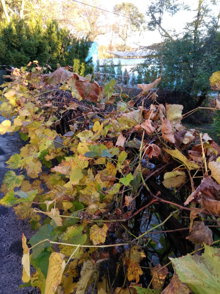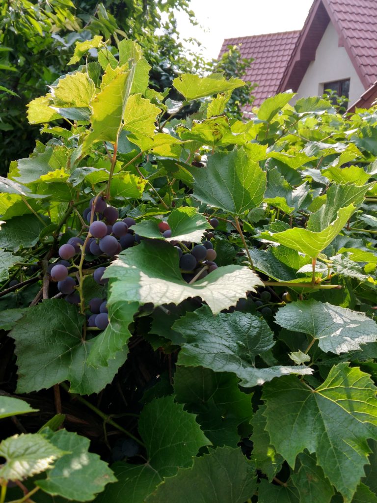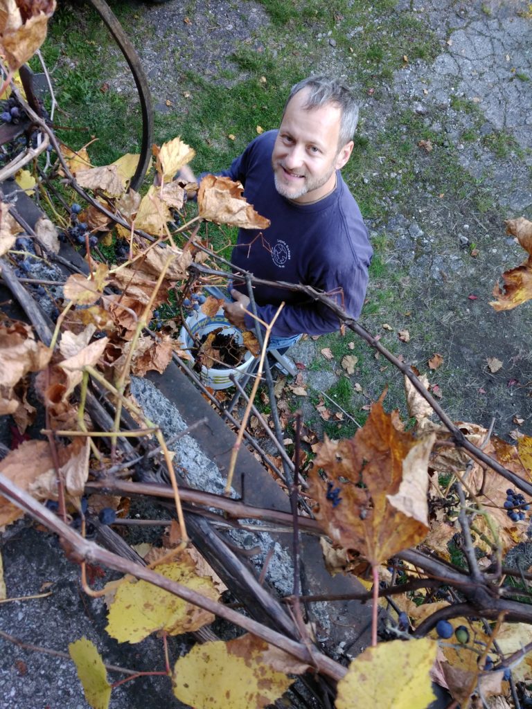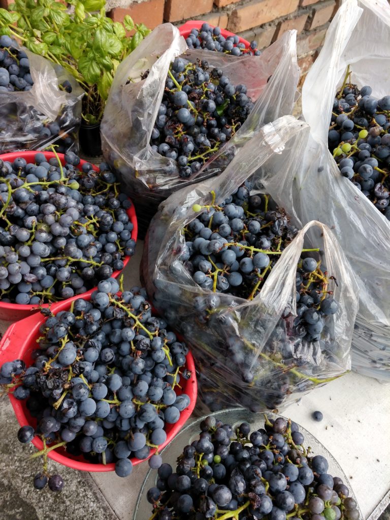 I wasn’t overly concerned with the grapes left over on the vine. After all, I felt good that at least not all of the grapes were going to waste, but I wasn’t going to overly exert myself trying to gather every last purple bauble. It was only a bit later that I realized that my easy idea of harvesting differs greatly from Zbyszek’s. He sent me out again to finish the job properly, and I astounded myself by gathering another half dozen or so grocery bags full of grapes. Where did they all come from??