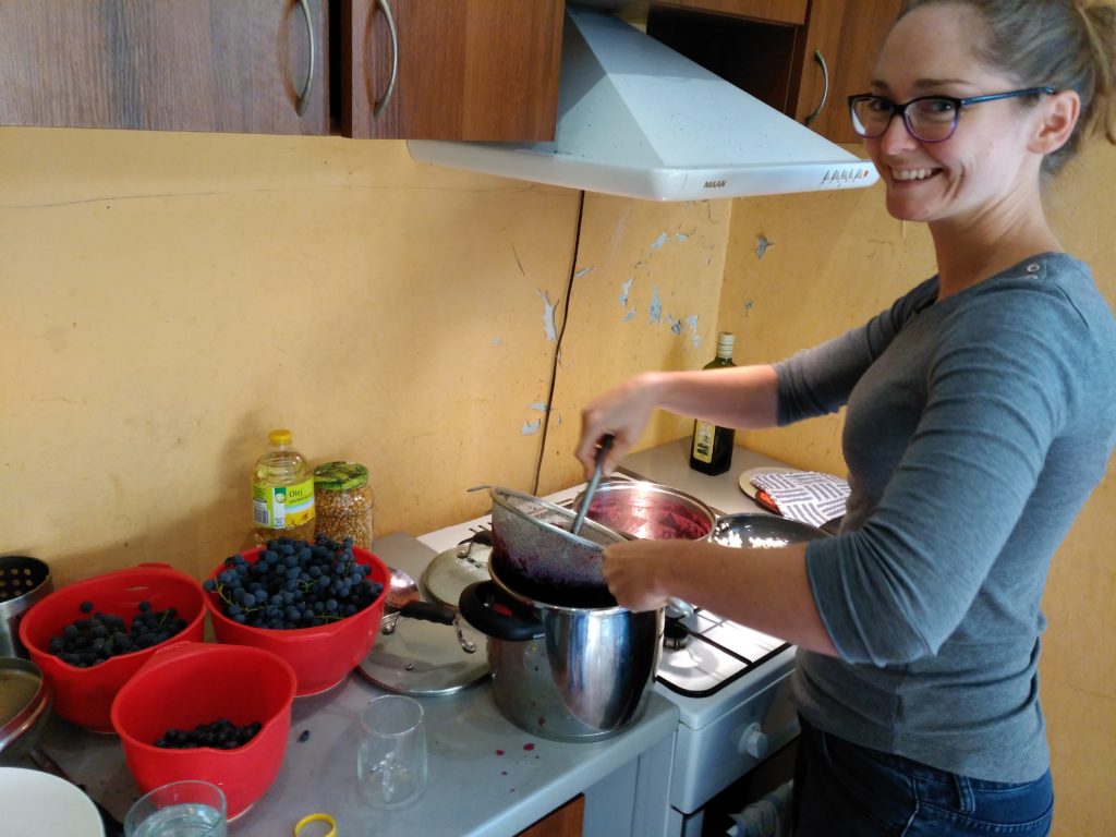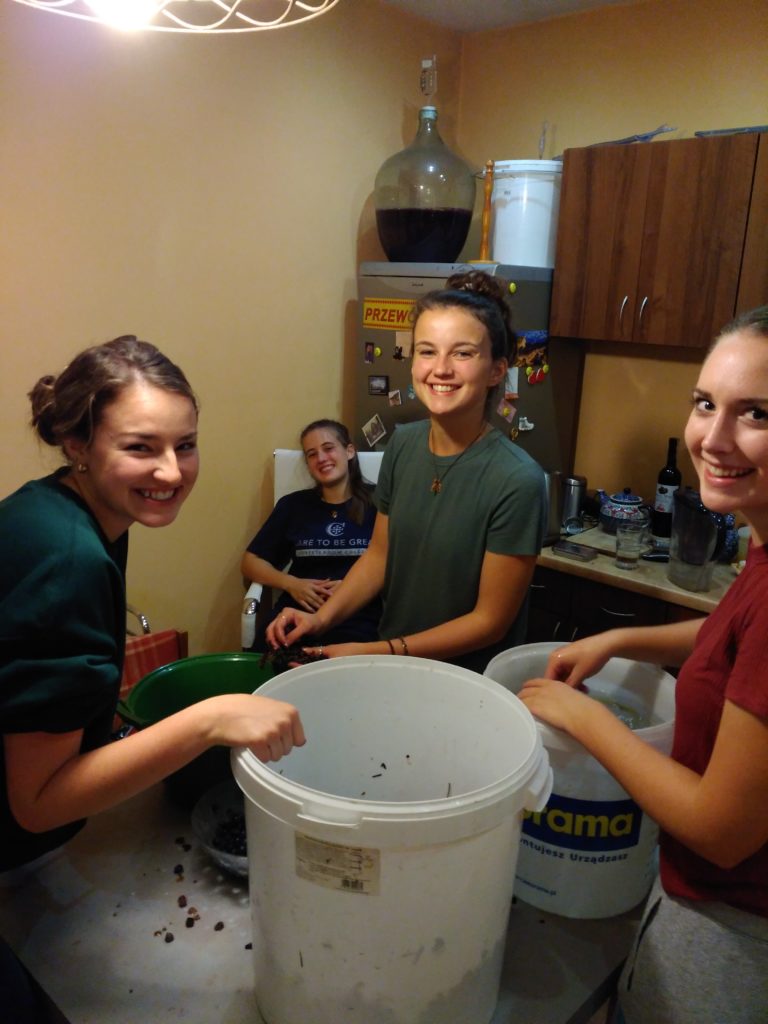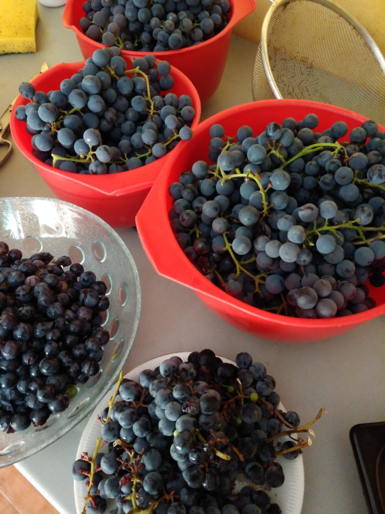 Much to my relief, this last harvest coincided with a visit of Basia’s cute friends from Rome who cheerfully agreed to take over the enormous process of washing, separating, and de-stemming these last buckets of grapes.