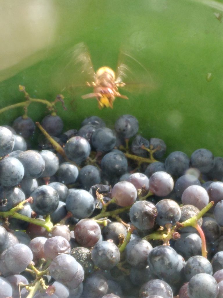 By now the grapes were getting sweeter so I had to contend with sugar-high bumble bees and wasps, and the grape picking experience wasn’t quite so bucolic.