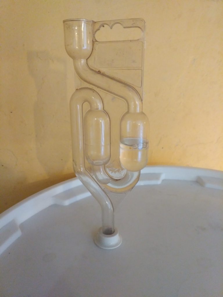 The wine is pretty funny during its first few weeks – it bubbles and gurgles incessantly, and all the skins float to the top. When the cacophony subsides after a couple weeks, you strain out the skins and seeds and then continue to let the wine rest and age.